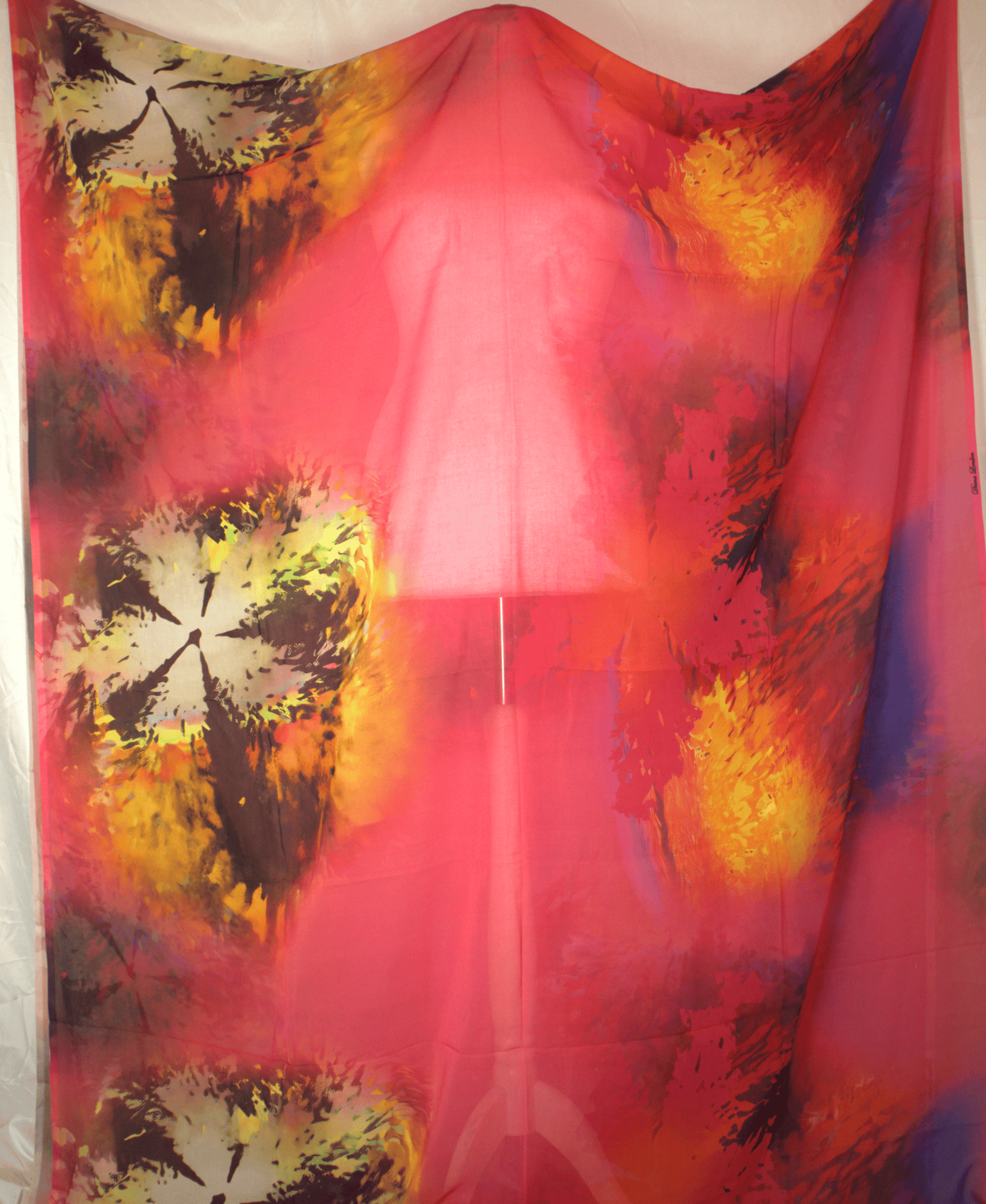 -Main Dirac Fabric – Flowing chiffon in a bright multi-colour print