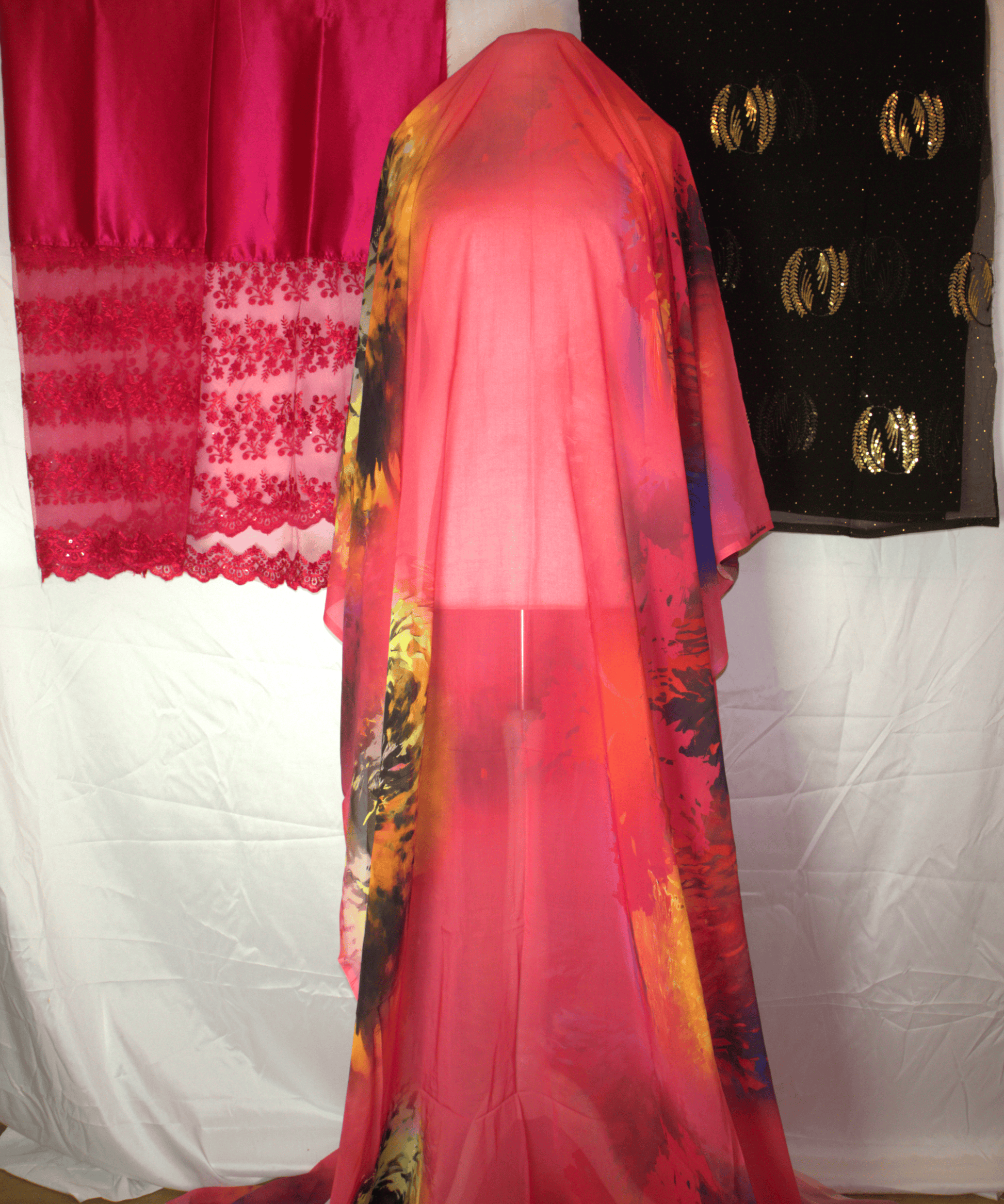 Stand out with this stunning Dirac Diana London fabric set, designed with vibrant pink, yellow, orange, and purple tones for a bold and elegant look. Perfect for weddings, parties, Eid, and cultural occasions.