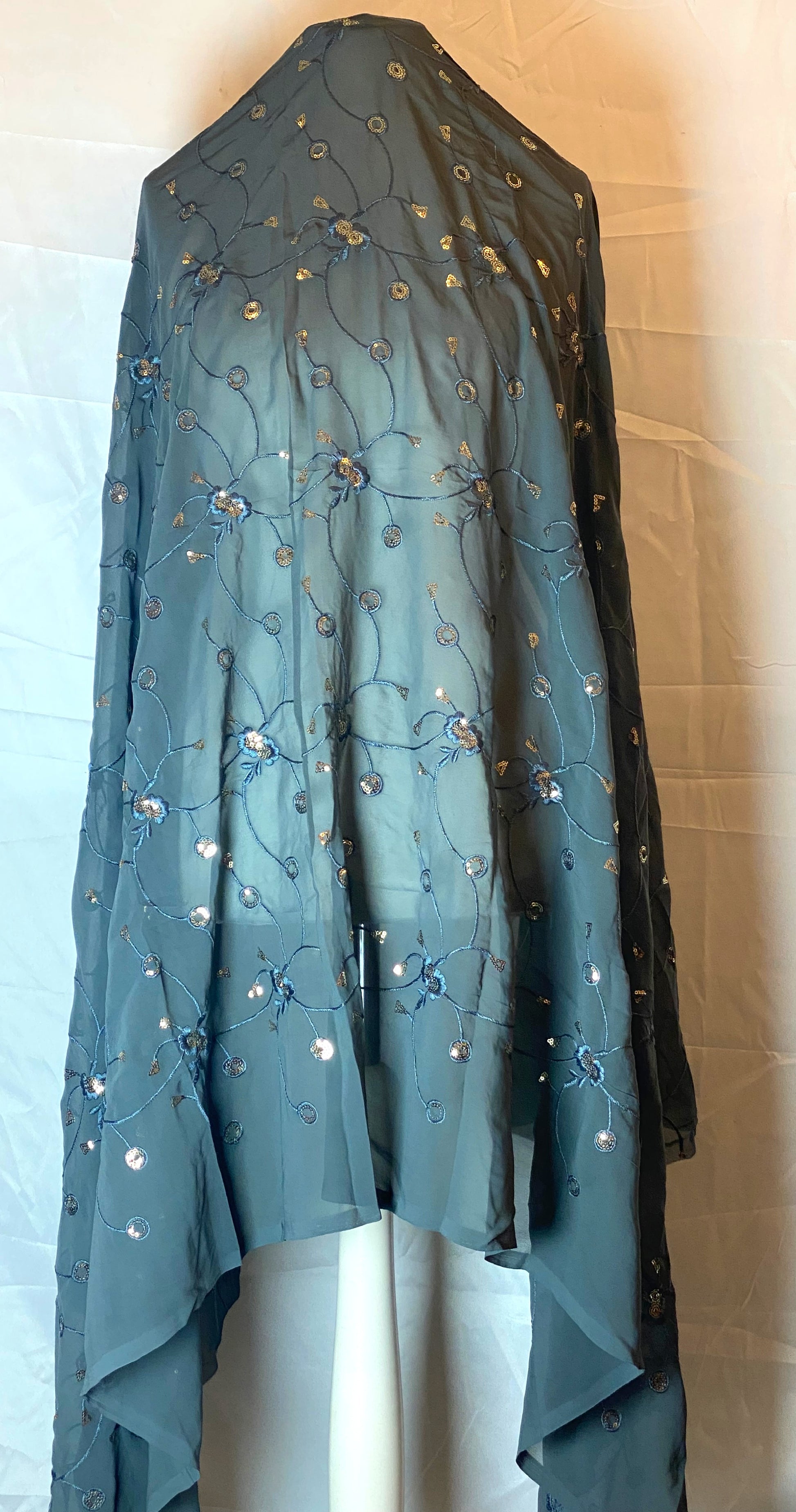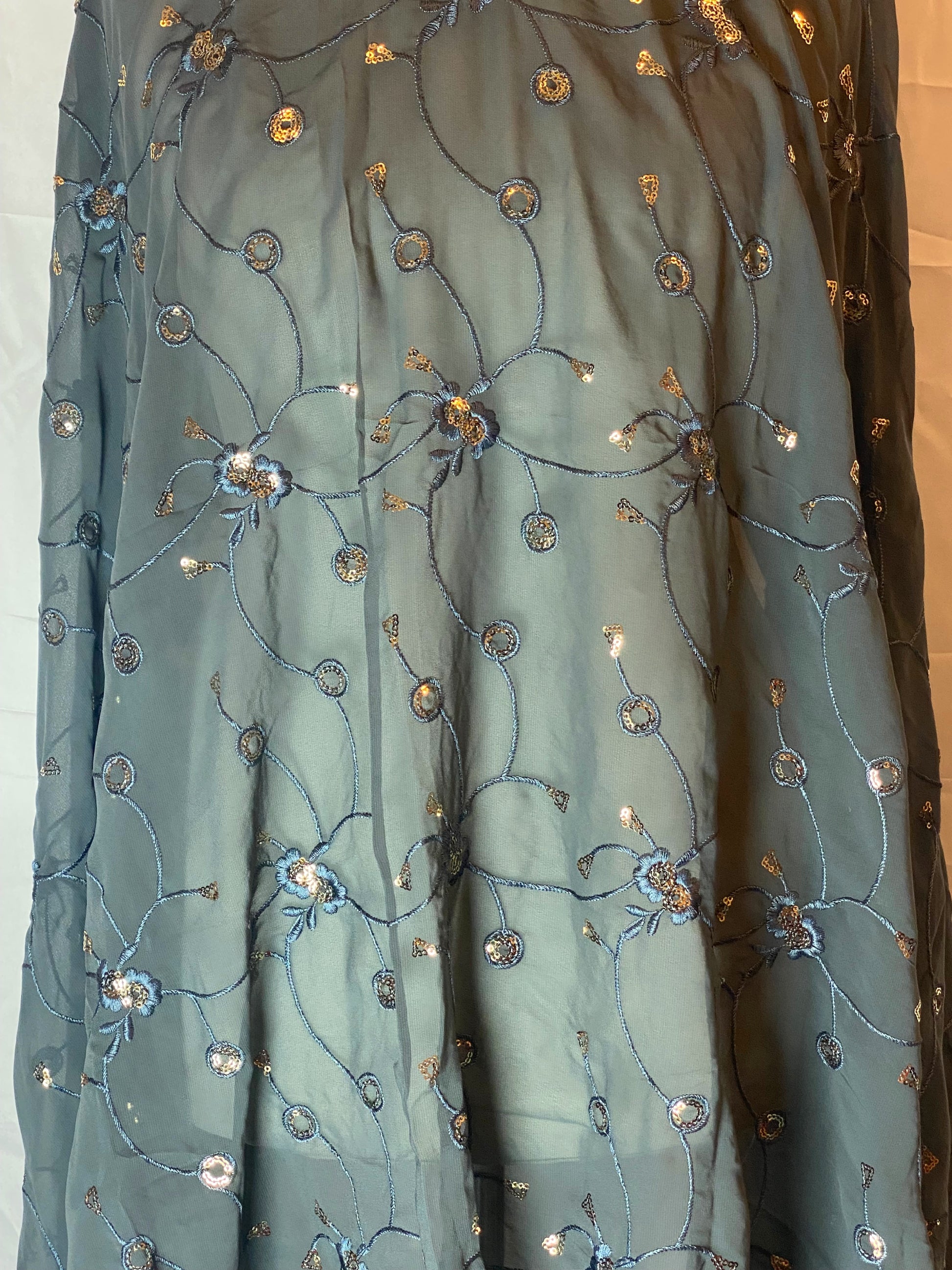 Gold sequin floral embroidery