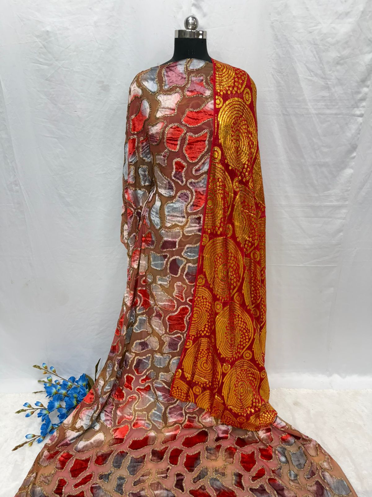 Dirac fabric – luxurious chiffon with a multicolour velvet mosaic texture