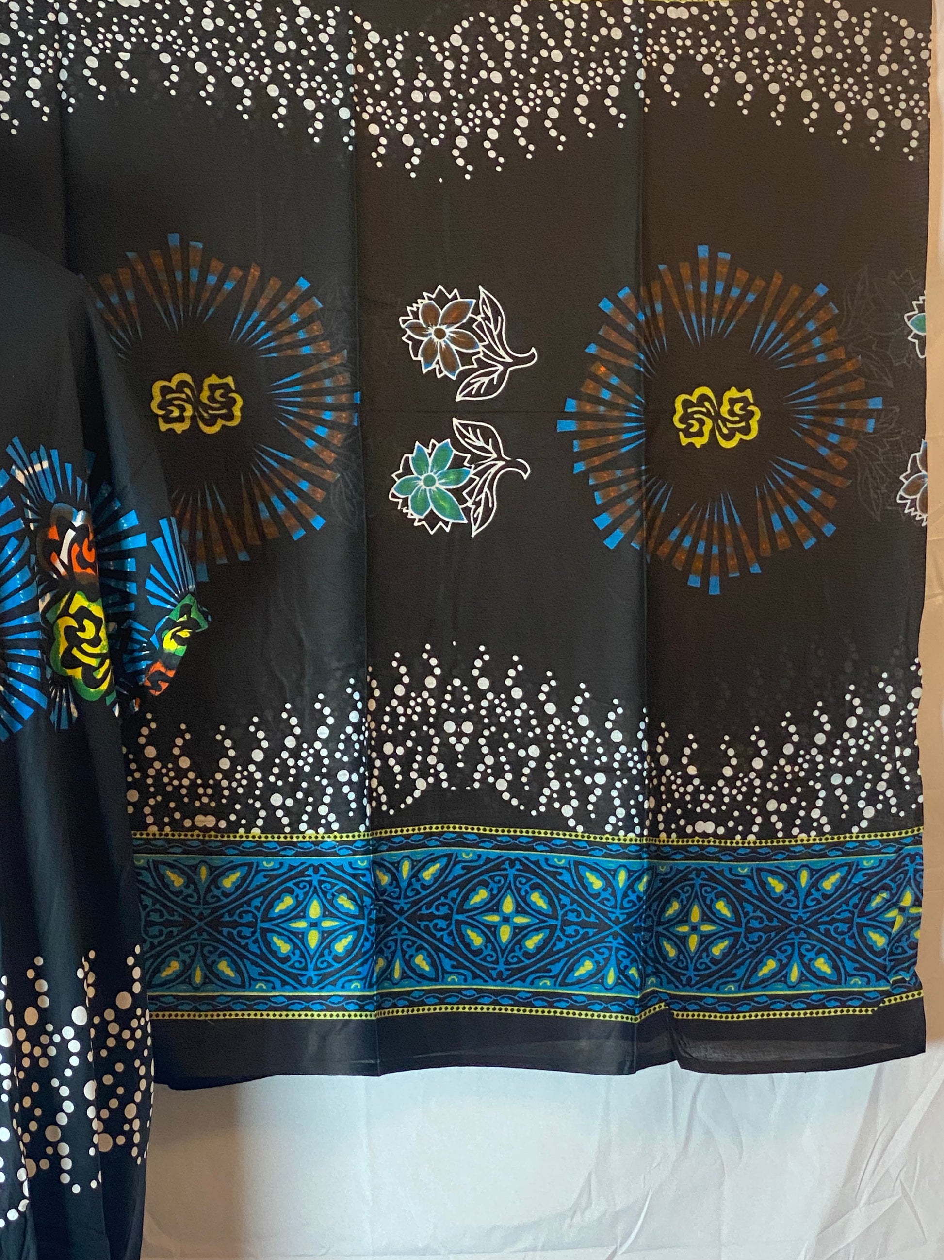 Main Baati: Crafted with a deep navy background and decorated with blue, green, orange, and yellow floral motifs, accented by dotted patterns and geometric details for a lively finish.